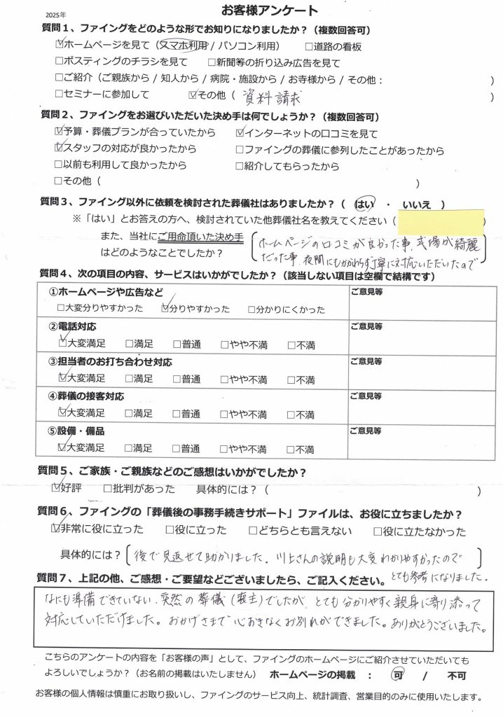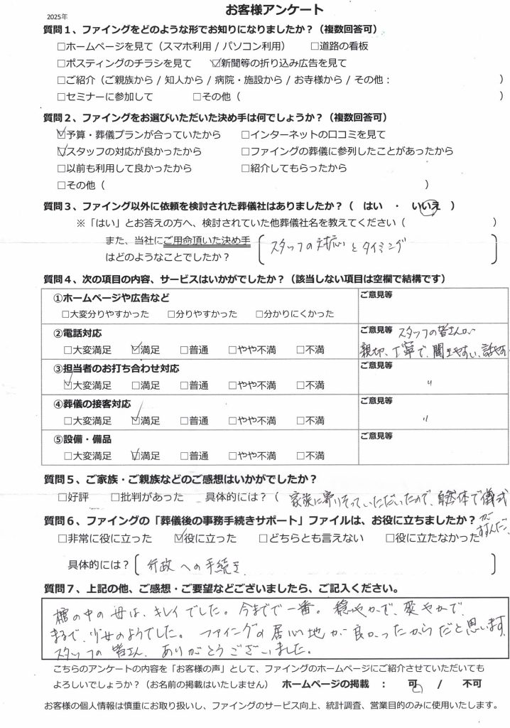 他のスタッフの対応も、とても温かく安心して故人を送ることが出来ました。