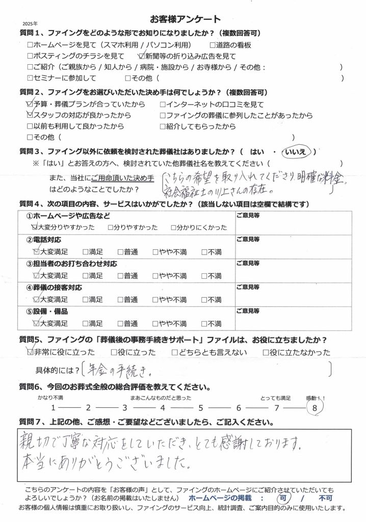 川上さんの星空の郷での活動も安心して、ファイングさんで葬儀をお任せしようと決め手になりました。