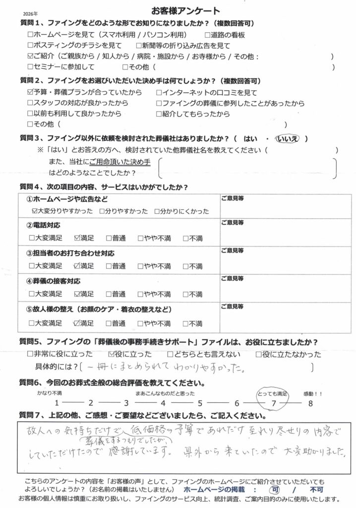 家族葬のファイングをご利用頂いた方からのアンケートを公開!